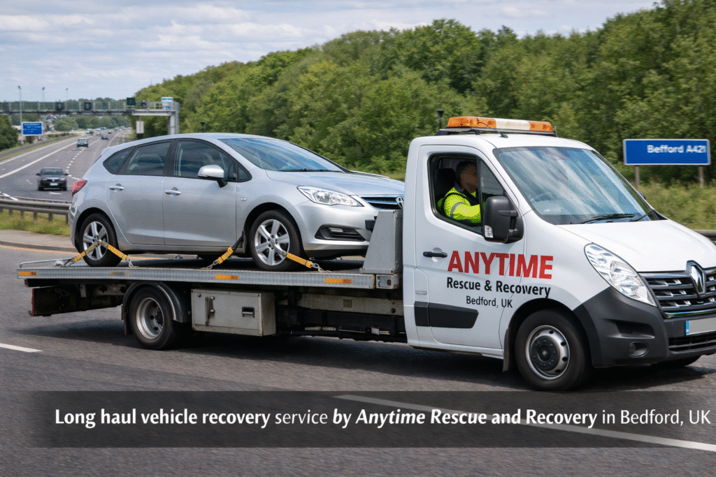 I’ve never needed my car transported far—what exactly is long haul recovery? Long haul recovery is a service where your vehicle is safely transported over long distances, whether it’s across Bedford, across the UK, or back home after a breakdown. With Anytime Rescue and Recovery, I know my vehicle will reach its destination securely, fully […]